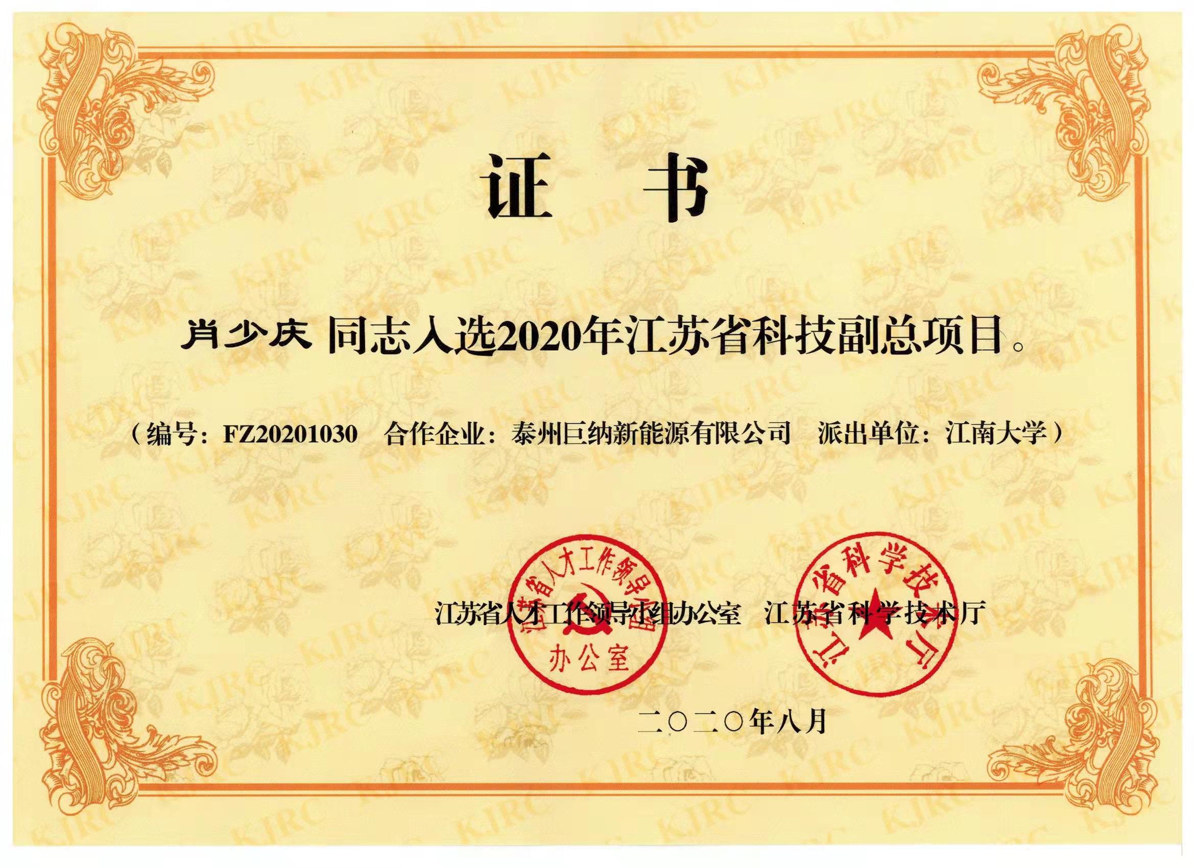 近日江蘇省人才工作領(lǐng)導小組辦公室、江蘇省科學(xué)技術(shù)廳聯(lián)合發(fā)布《關(guān)于確定2020年江蘇省科技副總入選對象的通知》。我公司引進(jìn)的高層次人才,江南大學(xué)肖少慶教授成功入選2020年江蘇省“科技副總”。