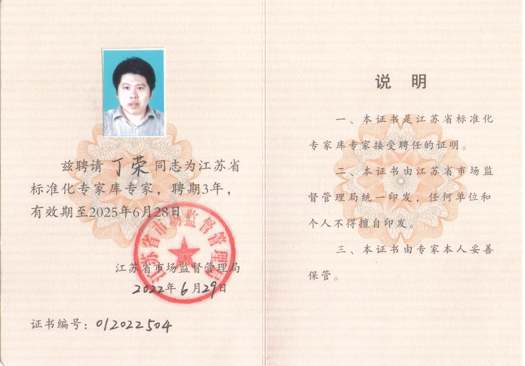 丁榮董事長(cháng)獲聘為首批江蘇省標準化專(zhuān)家